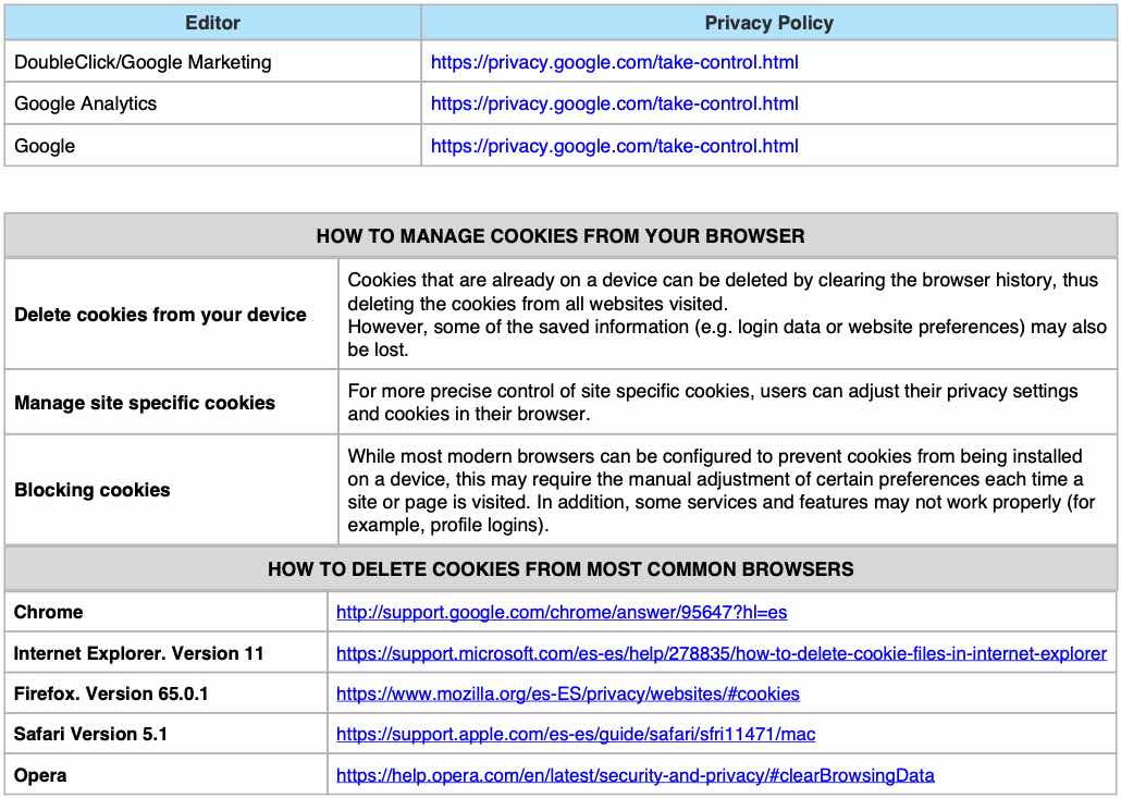 Own cookies: are sent to the user’s terminal team from a team or power managed by the own editor and from where the requested service is provided by the user.