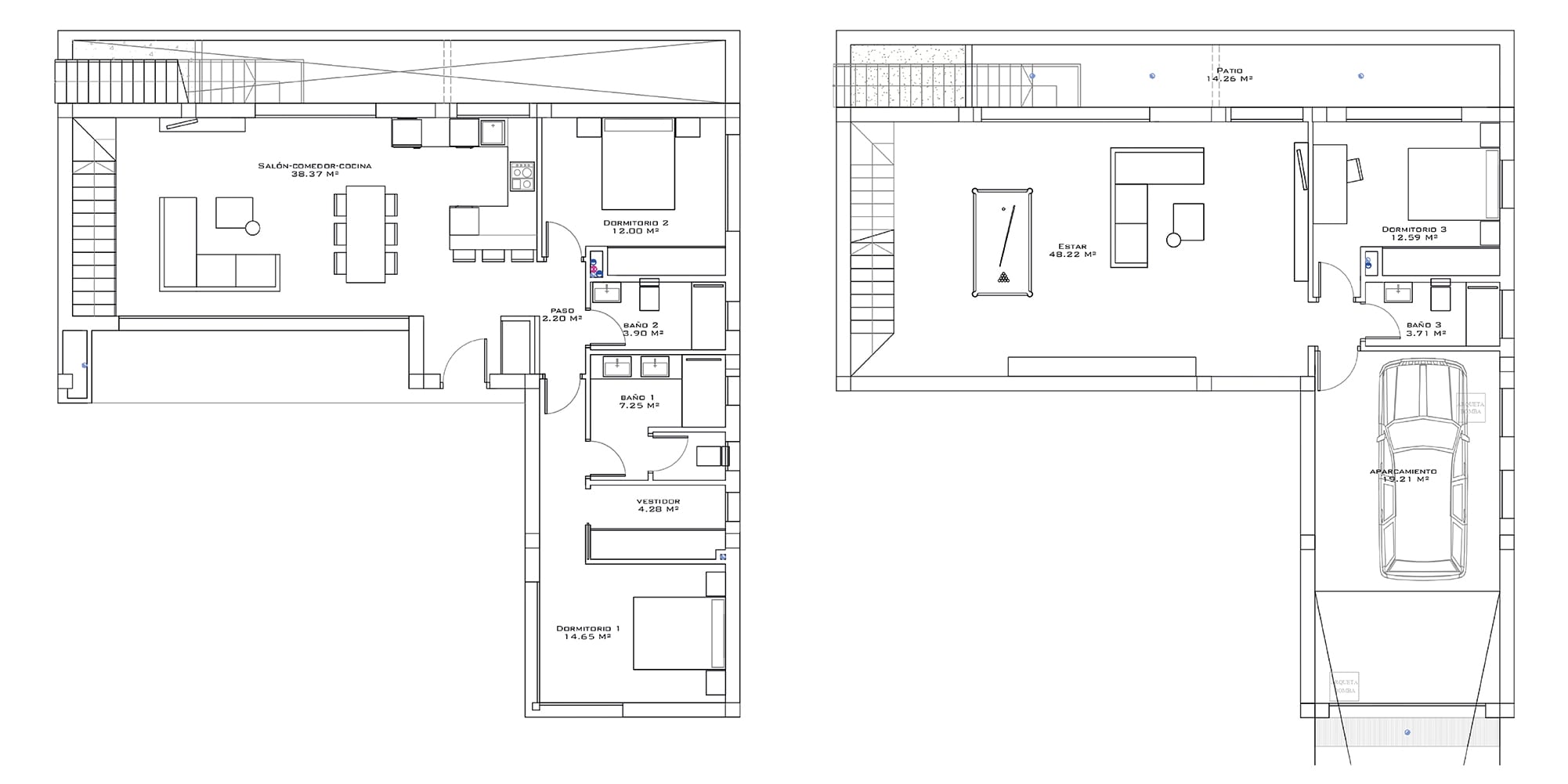 K’IIN VILLAS est une villa individuelle aménagée sur un étage, dans le lotissement « La Alberca » de la commune espagnole de Polop de la Marina. Elle s’inscrit dans un projet de 4 maisons construites sur des terrains d’une superficie comprise entre 430 et 480 mètres carrés. Sa forme en « L » permet de profiter au maximum des heures d’ensoleillement et du fantastique climat méditerranéen, en laissant entrer la lumière dans toutes les pièces de la maison. Elle a une vue imprenable sur la baie d’Altea et la montagne, un vrai plaisir pour les sens.